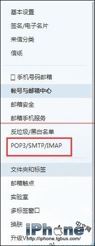 ¡¡¡¡2¡¢µ¥»÷¡°ÓÊÏäÖÐÐÄ¡±£¬´Ëʱ»á¿´µ½×ó²àÓÐÒ»Ïî POP3/SMTP/IMAP,£¬µ¥»÷ÕâÒ»Ïî¡£