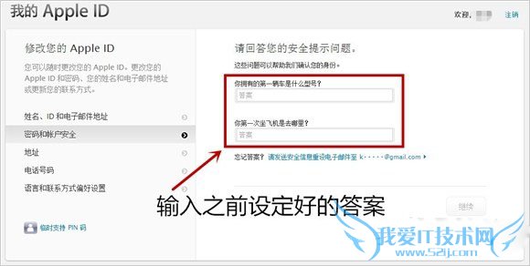 5、登陆成功后,我们需要进入“密码与帐户安全”,如果你曾设置过安全提示问题,则需要输入答案进入设置;