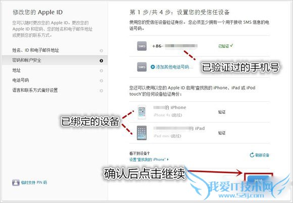 13、验证通过后会显示该帐号所关联的设备,若无误点击继续;