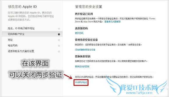 这之后登录账号时需进行验证,此处就涉及到帐号保护,如果想要修改账号密码,你必须要获取到短信的验证码才行。同时对于在新设备上通过账号购买应用时,也需要进行“两步验证”,以达到保障账号安全性的目的。而如果再次进入Apple ID管理界面则可以关闭两步验证。