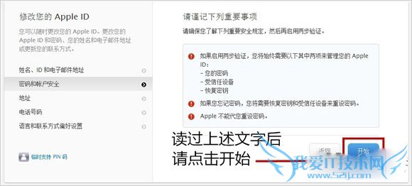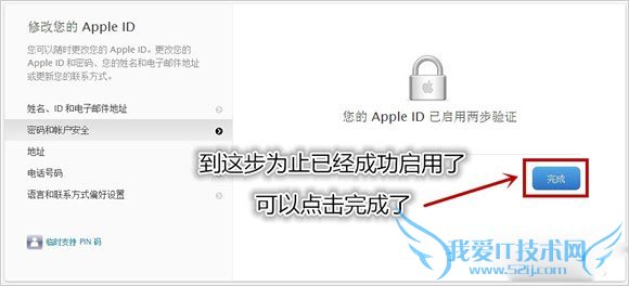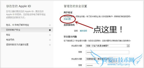 8、开启两步验证,之前设置的安全提示问题则会自动失效;