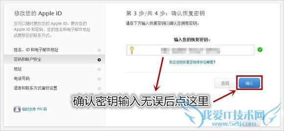 15、然后在新打开的页面中输入刚才保存的“恢复密钥”进行验证;