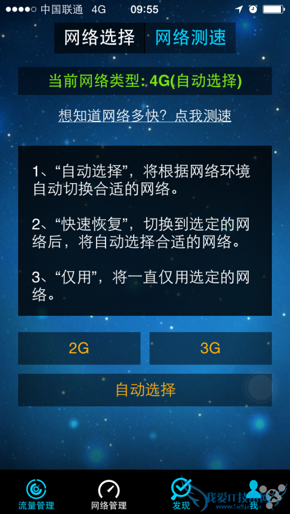 第三步:运行移动流量仪,网络管理里选择自动选择,如下图。