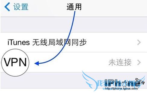 3、在通用列表的底部找到 VPN 一栏,点击进入,如图所示
