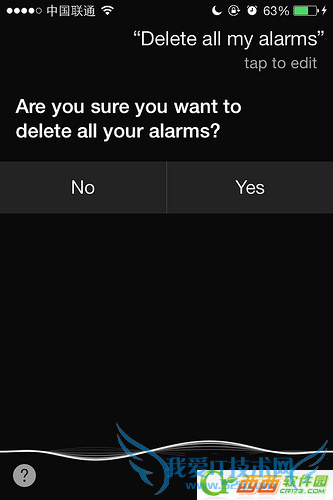 由此一来,列表里面定会出现一堆闹钟,而且时间大都是参差不齐的。一个个删除的话会非常累。当然如果你不介意的话,完全可以不删除,开关闹钟也使用Siri就好了。但如果像我这种不是处女座但又有那么一点奇怪洁癖的人,可以叫Siri帮你一次清空所有闹钟,方便快捷。语句:"Delete all my alarms" — "Yes" ,删除之后记得把常用的闹钟加回去,免得第二天上班悲剧。
