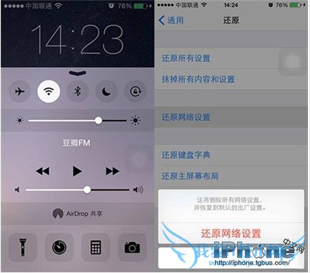 2、大家还可以试试还原网络设置,打开“设置”-“通用”-“还原”-选择“还原网络设置”,注意只要选还原网络设置就行了。