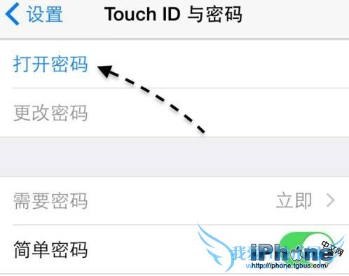 3、进入Touch ID与密码界面之后,找到“打开密码” 选项,点击进入。