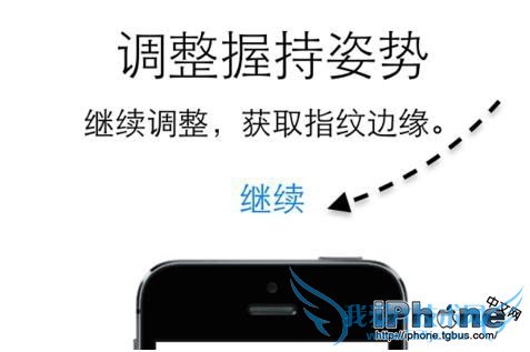 9、当上面的指纹记录完成以后,接下来还会记录一次。这次主要是识别平时用手指按Home键的姿势,根据自己平时用手指按键的习惯来操作。点击“继续”。