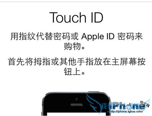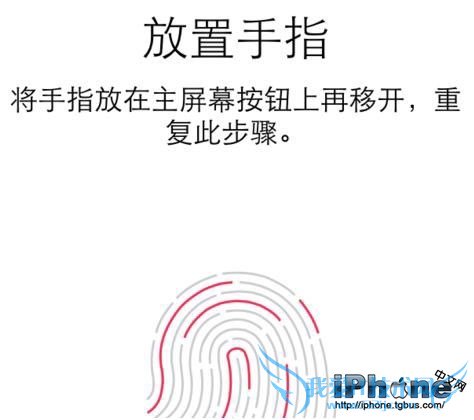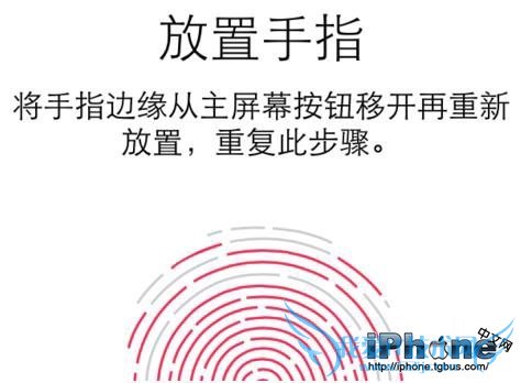 7、进入Touch ID的指纹识别界面之后,把你想要添加的手指放到主屏Home按键上。