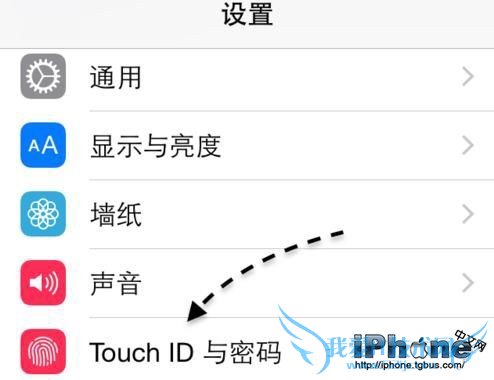 2、进入设置界面后,往下拉,找到“Touch ID与密码”选项,点击进入。