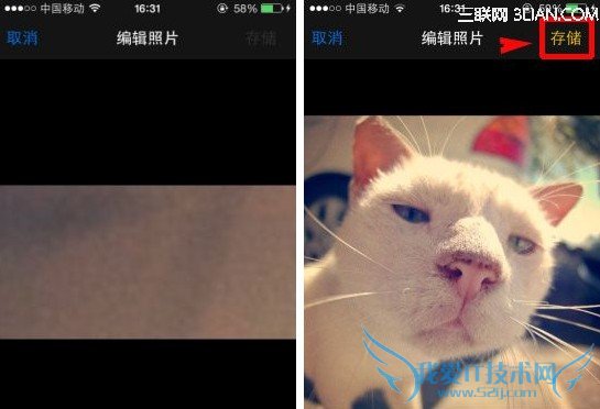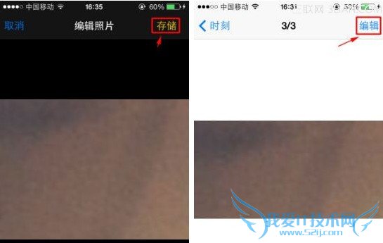 3、之后点击“存储”,原来的照片就变了我们剪裁过的一小部分了,这样就很好的保护了我们照片的隐私部分。可能大家会说,这样操作,不把照片给毁了吗,跟删除有什么区别呢?其实不然,要恢复照片也是相当简单的,只要反向操作一次即可。打开你刚才隐藏的照片,点击“编辑”。
