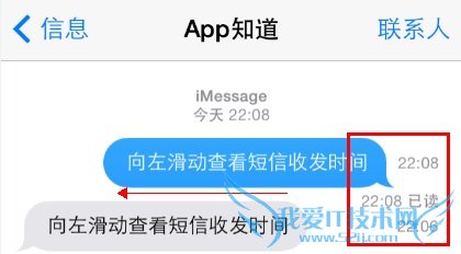在信息页面,用手指在屏幕从右向左滑动即可查看信息收取时间;