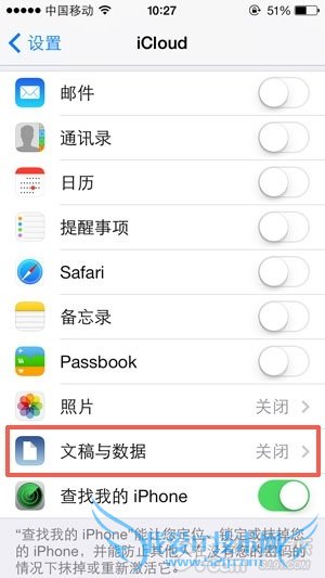 “iCloud-文稿与数据”:设置->iCloud->文稿与数据->关闭【文稿与数据】选项