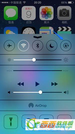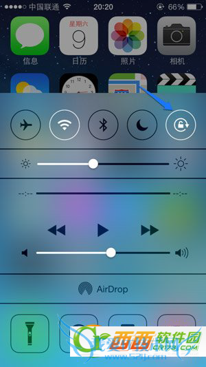 点击即可关闭屏幕旋转,此时会发现控制旋转的图标在控制中心以高亮显示;