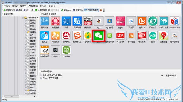 鉴于:文件夹的路径实在难以找到iFunBox中文版,打开:var/mobile/containers/bundel/application/文件夹,然后会如下图所示出现一堆图标,双击微信图标就会有——MicroMessenger.app文件夹,然后大家将素材替换掉就可以了。