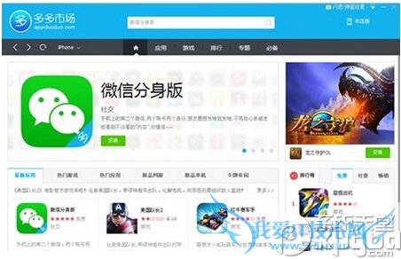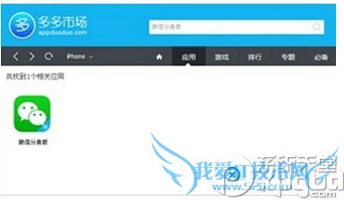 2、下载完成后,在多多市场的应用搜索界面搜索微信分身版即可,然后连接您的苹果设备。