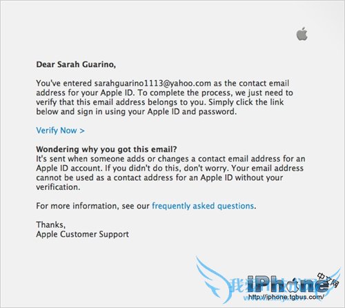 当你绑定了正确的邮件地址到你的Apple ID之后,你会从苹果收到重要事项的提醒。另外,iTunes会在每一次你购买付费商品后给你发送邮件进行确认。