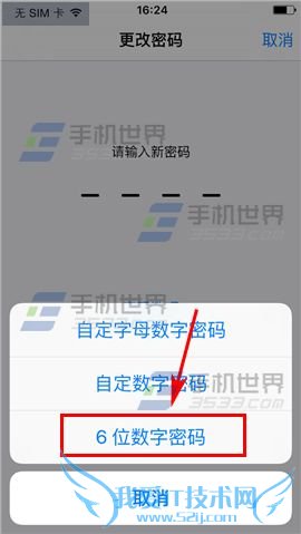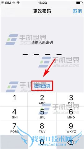 3)在更改密码界面点击【密码选项】,选择【6位数字密码】即可。(如下图)