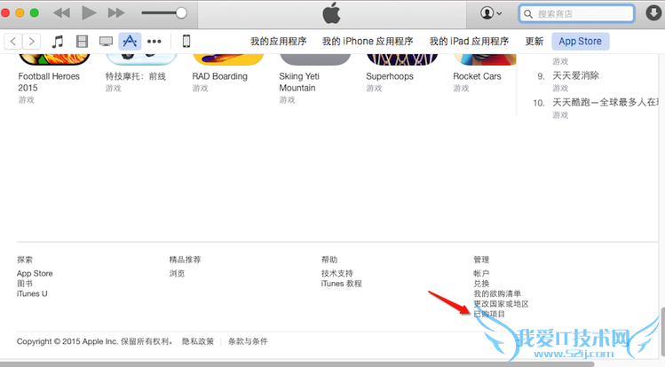 2、登陆Apple ID以后,用鼠标拖动到页面的最底部,点击右下角的“已购项目 ”选项,如图所示。