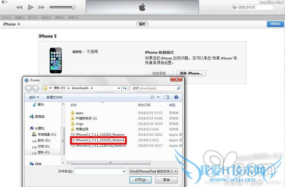 3.iTunes 会弹出对话窗,然后选择 iOS 7.1.1 固件