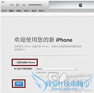 5.恢复完成之后,在 iTunes 上点击“设置为新的设备”