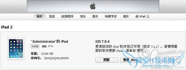 1.将iPhone iPad iPod touch 连接电脑打开 iTunes