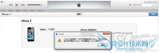 2.iTunes 会自动检测到一台等待恢复的设备,点击确定
