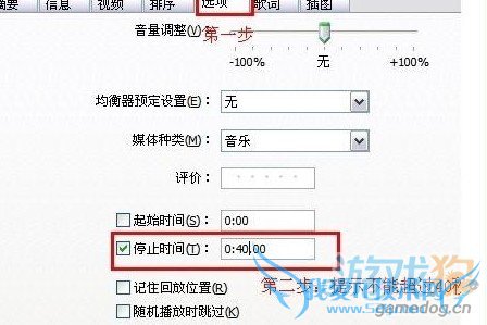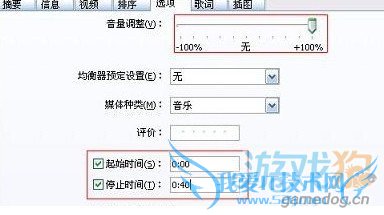 4.选择“选项”填上“起始时间”和“停止时间”(在40秒以内),-“确定”