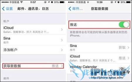 2、进入后点击【获取新数据】,开启【推送】选项。