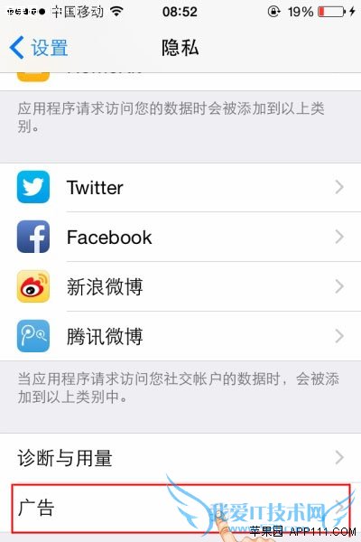如今,随着无线网络的普及,手机上网更加便利,自然广告内容也不断增加。在iOS8系统中,具有针对广告商的行为限制功能,不过默认状态下是该功能是关闭的。开启限制广告追踪功能的方法如下: