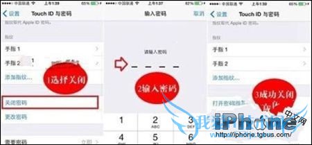 2、进入Touch ID与密码设置前,需要先输入一次解锁密码,才能进入。输入密码后,就可以进入Touch ID与密码设置界面后,点击下方的【关闭密码】,之后会弹出一个“输入密码”界面,我们输入一次四位数的解锁密码,就可以成功关闭Touch ID与密码了。