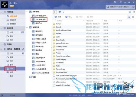 5、安装完成之后重启一次设备即可正常显示【文件系统(越狱)】了。