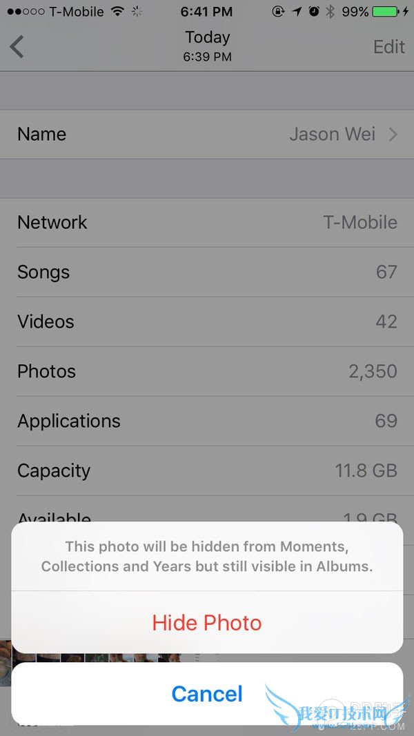 首先我注意到的一点是,iOS9系统字体整个变了,英文和中文都变了,具体是哪个字体我不认识,不过我很喜欢整体新的感觉,小清新的气氛越来越浓了。每个字符之间的距离似乎是变得稍微的宽了一些,总之看起来很舒爽。如下图所示,系统菜单的样式也变了,取消和菜单选项分开成了两个圆角矩形,个人觉得不如以前。