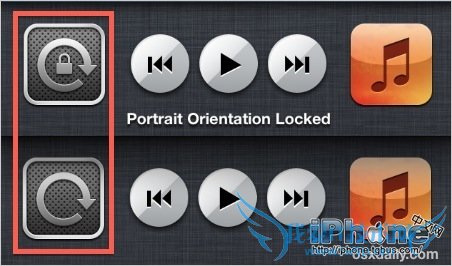在iOS6以及更早的设备中,你可以双击Home键,召出多任务栏,之后向左滚动知道你看到这个旋转锁定牛。