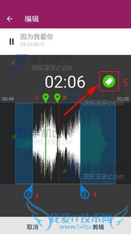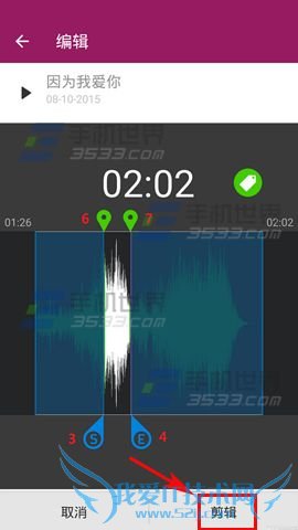 2)最后只需将3、4调节尺拖动到6、7的位置,点击【剪辑】即可完成,最后我们便能看到我们制作好的短铃声了。(如下图)