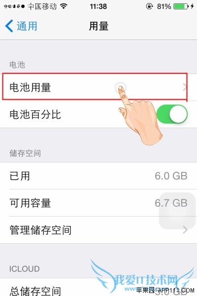 第二步,在用量设置页面,点击“电池用量”。