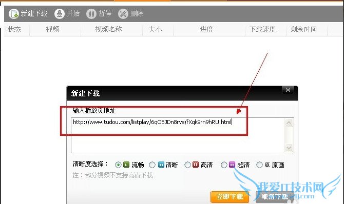 2、到土豆网站去物色你喜欢的视频,然后复制网页的地址,然后将网页的地址粘贴到,新建的下载项目上---立即下载