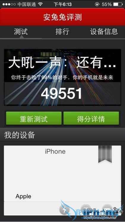 安兔兔跑分测试软件一直是众多安卓手机在手机评测里面当中喜欢使用的工具,如今也成为了测试智能手机性能的一个标杆。如今安兔兔测试软件也推出了苹果版,而我们使用的是苹果5.0.1版。