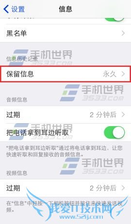 1)打开iPhone6Plus的【设置】,选择【信息】,然后点击【保留信息】。