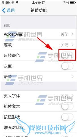 2)在通用界面点击【辅助功能】,进入后把【反转颜色】右边按钮关闭就可以了。(如下图)