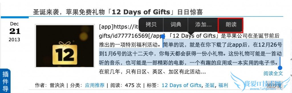 •选定一段需要Siri朗读的文字