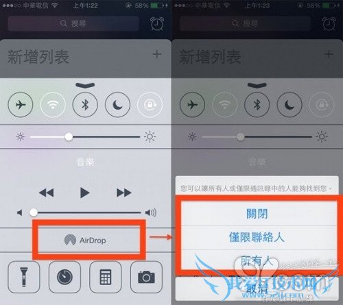 只要打开刚刚提到的「控制中心」,点击「Airdrop 」后就可以开启啰!很简单吧