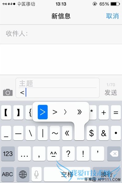 第二步,在符号键盘中,点击长按书名号“《”,即可显示“<”,实现小于号输入;至于大于号,则长按”》“显示”>“选项,手指移动至该符号上,即可实现输入。