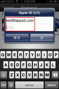 8.添加完词组我们来测试一下,打开iTunes登陆框键入刚刚设置的快捷命令,系统会自动显示用户字典里相对应的词组,