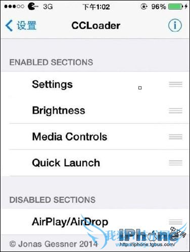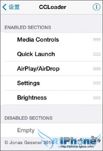 2、上面的ENABLED SECTIONS是你在控制中心启用的部分,下面的DISABLED SECTIONS是你在控制中心不启用的部分,如果你不想某个部分出现在控制中心,就将其拉到下面就可以了;