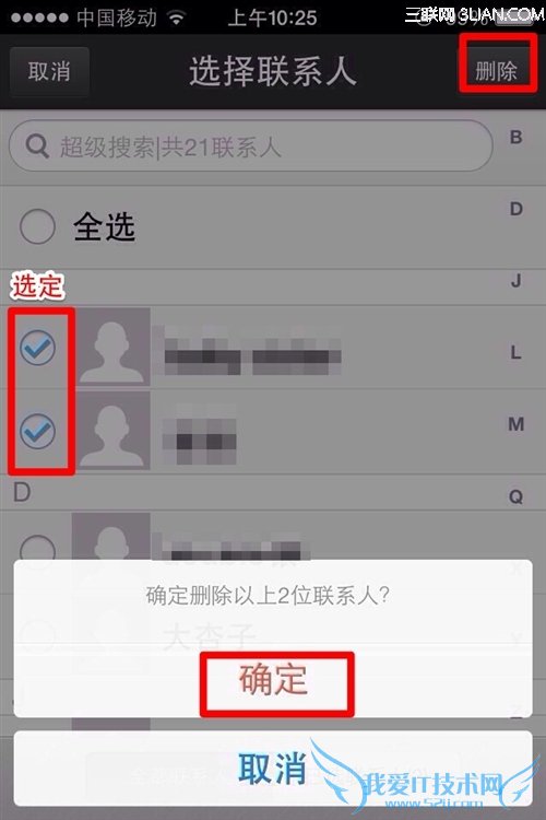 4、选定你需要删除的人后,点击右上角的【删除】;