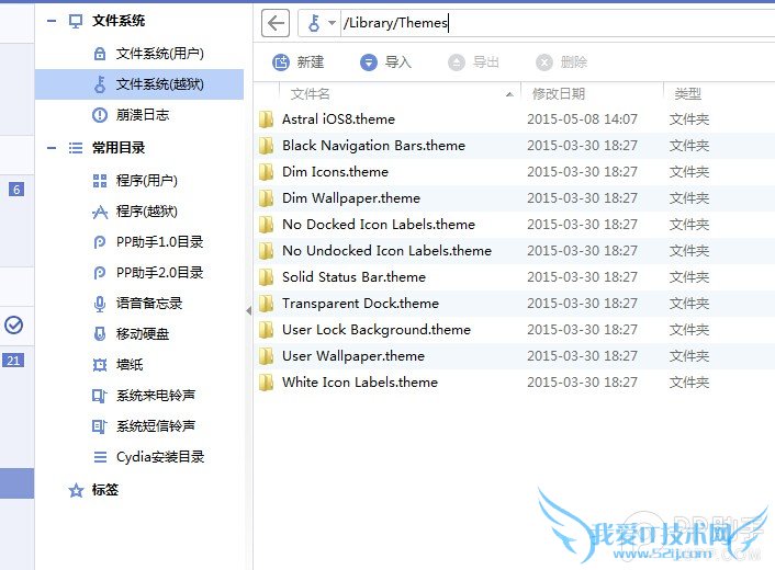 ②手机连接电脑,用pp助手打开文件系统(越狱)/Library/Themes;