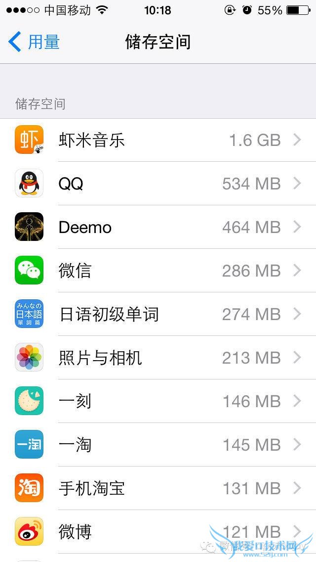 第一步,进入设置——通用——用量。 在储存空间就可以看到我们目前已使用空间和可用空间。在这里以小编的 16G iPhone 5s 为例。或许有朋友觉得奇怪,为什么已用和可用容量加起来不是 16 G的?其实中间误差部分就是系统空间啦!