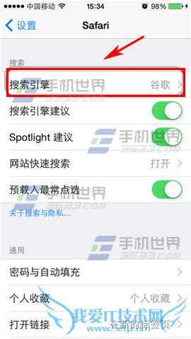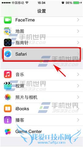 1)点击【设置】下滑找到【Safari】并点击。(如下图)
