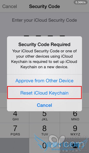 第五步:在弹出的面板中选择「重设 iCloud 钥匙串」选项。